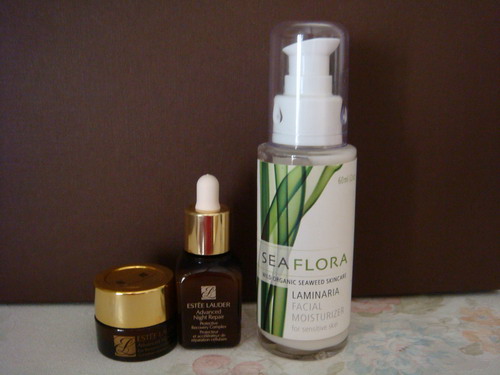 幸好我妹有送我這罐sea flora, 它是標榜使用天然海藻的保養品. 一開始是走spa, salon的通路.它雖然是乳狀, 可是一擦上去卻馬上就吸收, 讓我感覺好像沒擦, 一點油的感覺都沒有, 但是肌膚又確實有變嫩. 所以這一瓶夏天用實在是太適合了. 可是冬天用可能會有點弱. 雖然夏天早上(如果前一天有吃油炸的)T字還是會出油, 但是至少原本會乾的部位還是很水.
