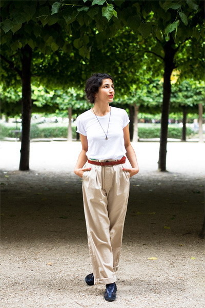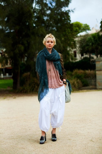一樣的上半身, 如果把平常穿的牛仔褲, legging換成哈倫褲, 復古味就會多了點, 視覺畫面就會豐富了點, 還多添了種率性型的女人味