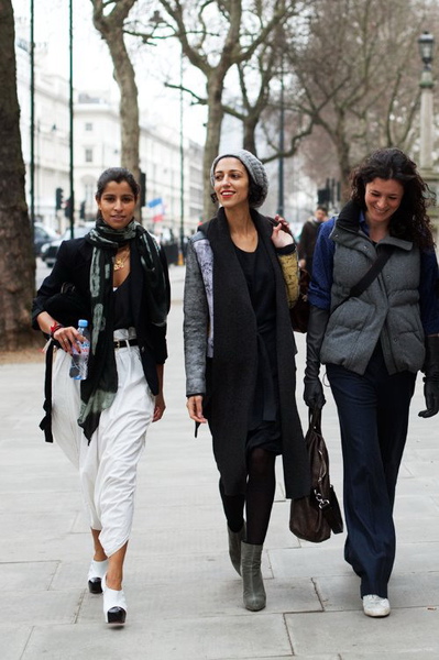 7. 看來這件帶光澤的哈倫不少人有. 她們還有志一同的都配尖頭