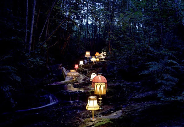 靈感可能真的是來自某些宗教儀式 但是把水燈換成家裡的檯燈, 海邊湖泊換成潺潺小溪