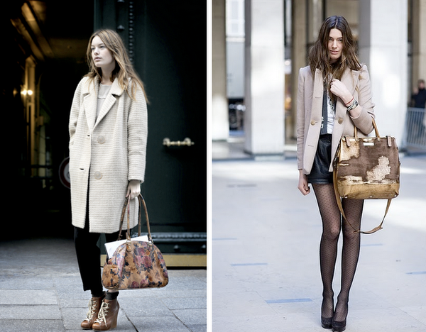 左邊這位的圍巾和包包配的很好,但是想要更rock就要小皮裙,UK版ELLE把皮裙皮褲列為今年秋冬重點單品,