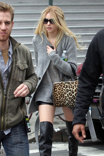 不過Alexa Chung是配皮短褲(看超連結)來秀她的細直美腿. (>< 不公平!)