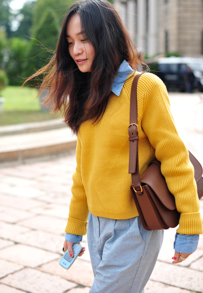 嬌小的美眉可能還是比較適合短版合身的毛衣, 下半身看是要配哈倫褲 ,