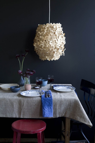 紫色帶黑的蘭花單看可能會覺得有點憂鬱, 但很適合擺在如此繽紛又有文藝味的空間!