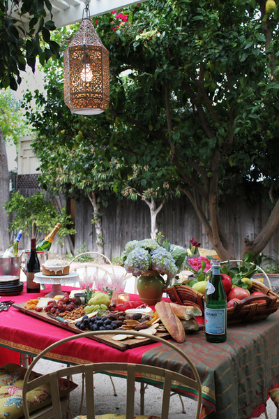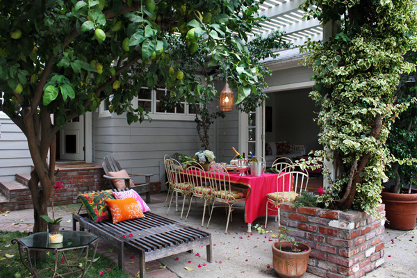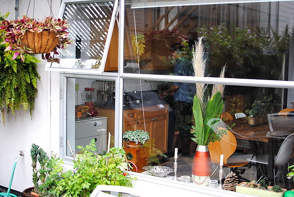 哇!綠樹跟桃紅色桌巾的對比不俗又豔麗, 以後party都不用到外面訂場地了, 直接去她家就好.