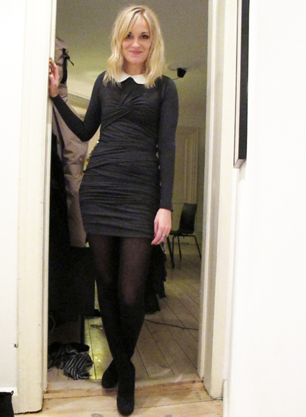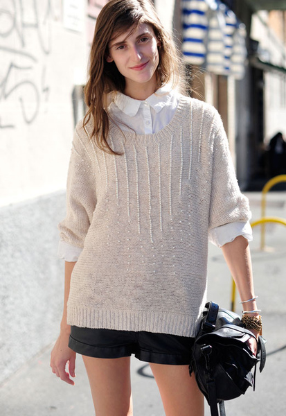 小白領除了跟A字裙黑毛衣相襯以外, 灰色毛衣算是個清爽一點的選擇.
