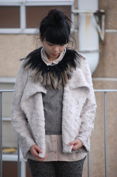 我也很喜歡領子外面再加個羽毛項鏈. 別出心裁的可愛.