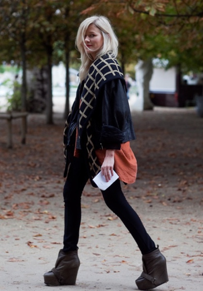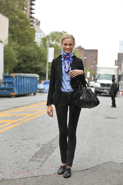 上圖Sasha一身灰黑打扮, 若是少了那條紫花圍巾, 整體感覺不知會變的多生硬多無趣阿!