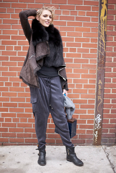 後來看到其他女生配寬鬆的袋鼠褲如最上兩張, 雖然我也會想那樣穿啦, 感覺很舒服, 但就是不一樣的味道.