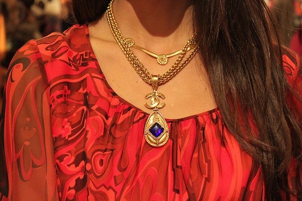 我喜歡這個Art Deco時期的古董項鏈更勝於上上圖的Chanel, 看看那細緻的同心圓花紋框!