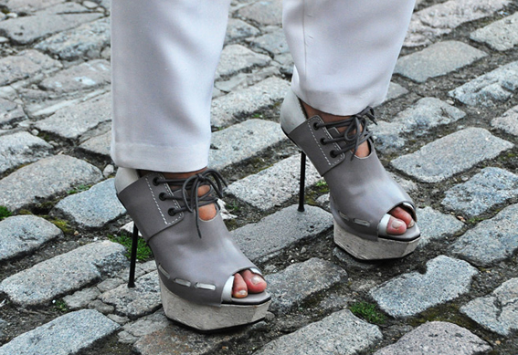 這次的每一雙高跟鞋都很有戲劇效果, 但是裝飾性應該遠遠超過實用價值.