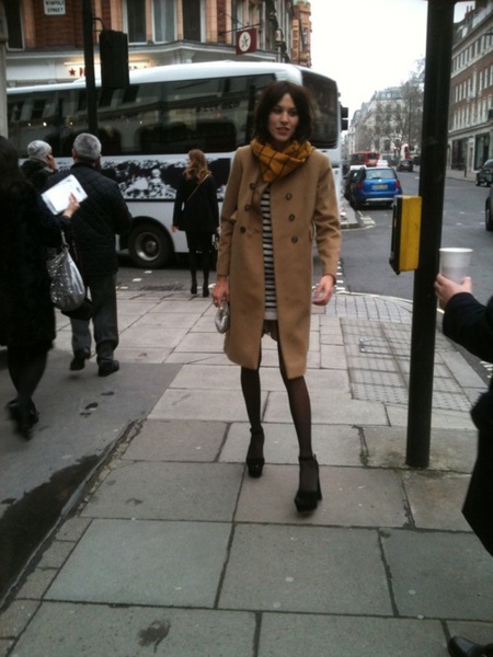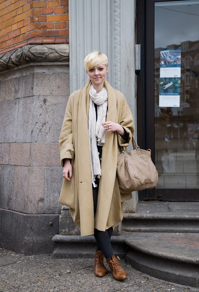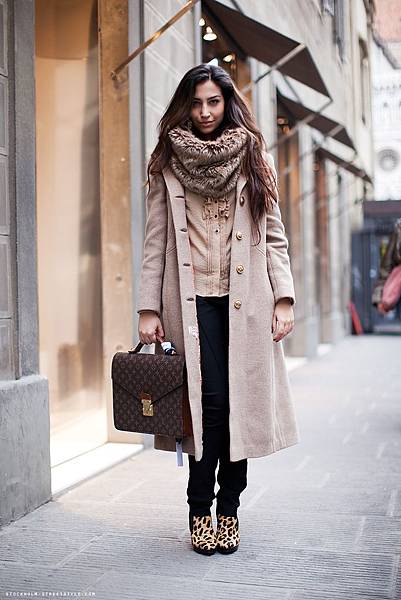 我也喜歡淺色圍巾搭駝大衣, 看起來非常溫柔.
