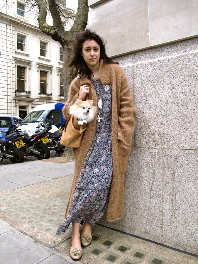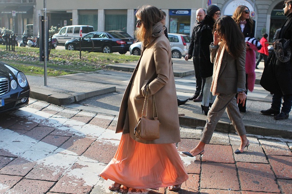 搭杏色長裙是很女人味又別出心裁的穿法.