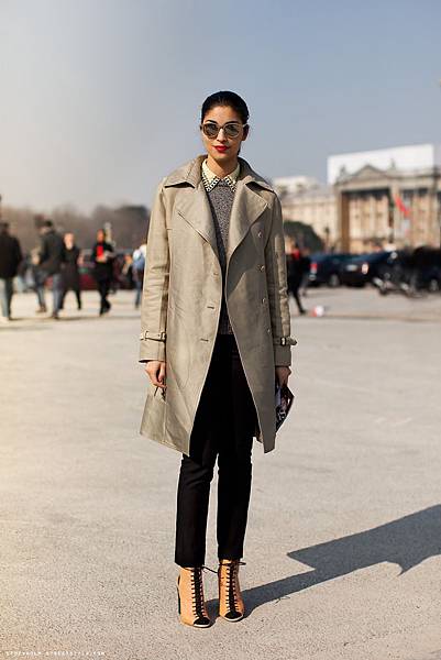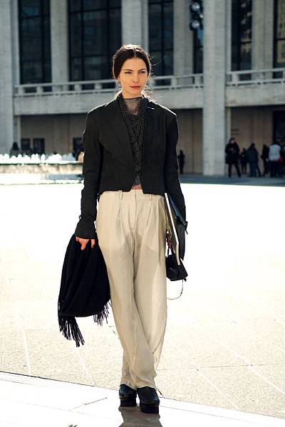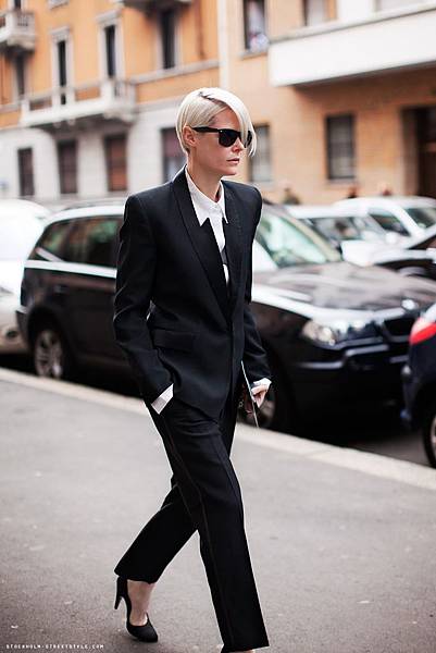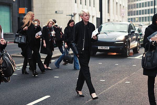 她永遠都這麼俐落, 每次出現一定是大衣和直挺的長褲.