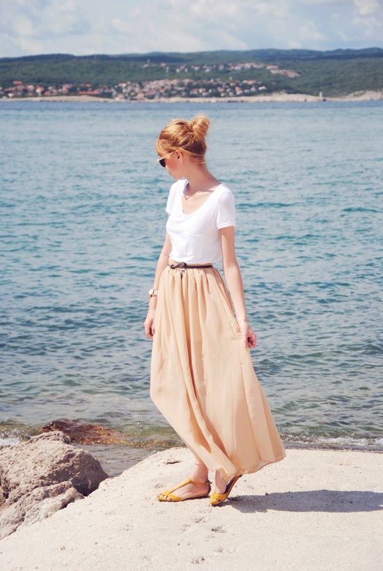 開始想像明年夏天, 穿著綁帶涼鞋和簡單的白T長裙,
